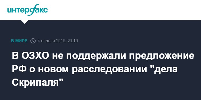 Москва. 4 апреля. INTERFAX.RU - В исполнительном совете Организации по запрещению химического оружия (ОЗХО) отклонили предложение РФ по новому расследованию дела об отравлении в Великобритании экс-сотрудника ГРУ Сергея Скрипаля, сообщат газета The Guardian.