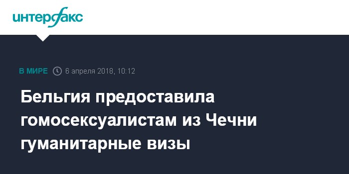 Москва. 6 апреля. INTERFAX.RU - Пятеро чеченских гомосексуалистов получили в Бельгии гуманитарные визы, пишет в пятницу газета De Morgen.