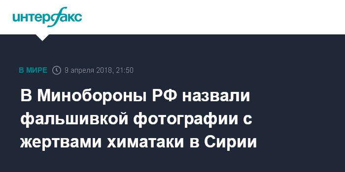 Москва. 9 апреля. INTERFAX.RU - Российские военные назвали подделкой опубликованные правозащитниками в социальных сетях фотографии с жертвами химической атаки в сирийском городе Дума (Восточная Гута).