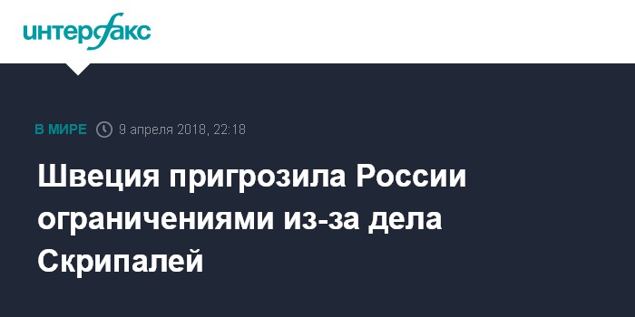 Москва. 9 апреля. INTERFAX.RU - Швеция готова принять дополнительные меры в отношении России, если российское правительство не будет сотрудничать с Великобританией и Организацией по запрещению химического оружия в расследовании отравления экс-сотрудника ГРУ Сергея Скрипаля, заявил в понедельник премьер-министр Швеции Стефан Лёвен.