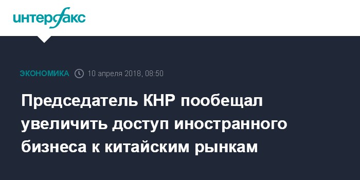 Председатель КНР пообещал предоставить иностранным компаниям более широкий доступ к финансовому и производственному секторам, увеличить импорт, а также улучшить защиту интеллектуальной собственности и обеспечить более прозрачную и управляемую среду для зарубежных инвестиций.