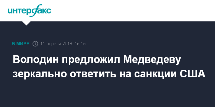 Москва. 11 апреля. INTERFAX.RU - Председатель Госдумы Вячеслав Володин на заседании в среду обратился к премьер-министру Дмитрию Медведеву с предложением зеркально ответить на санкции США против России.
