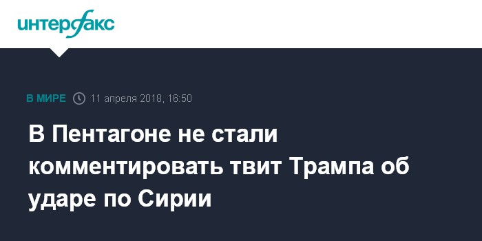 В Пентагоне не стали комментировать твит Трампа об ударе по Сирии