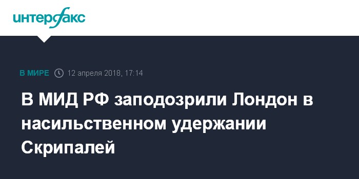 Москва. 12 апреля. INTERFAX.RU - В Москве считают, что Юлия и Сергей Скрипали могут насильственно удерживаться в Великобритании, заявила официальный представитель МИД РФ Мария Захарова.