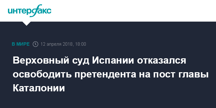 Москва. 12 апреля. INTERFAX.RU - Верховный суд Испании в четверг ответил отказом на запрос об освобождении из тюрьмы бывшего руководителя общественной организации "Национальная каталонская ассамблея" и претендента на пост главы Женералитата Каталонии Жорди Санчеса, пишет газета El Pais.