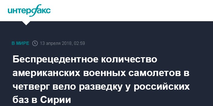 Беспрецедентное количество американских военных самолетов в четверг вело разведку у российских баз в Сирии