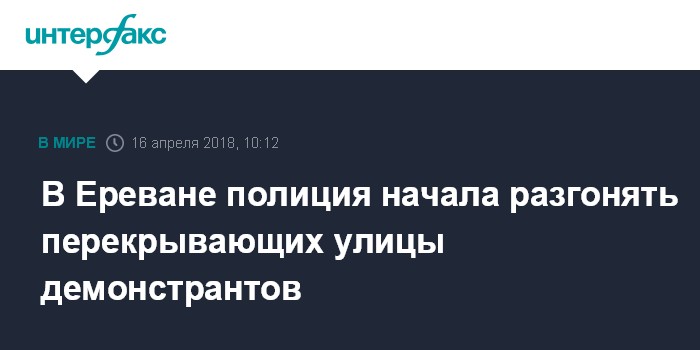 Москва. 16 апреля. INTERFAX.RU - Силы полиции Армении начали зачистку проезжей части центральных автодорог Еревана от демонстрантов, сообщает корреспондент "Интерфакса".