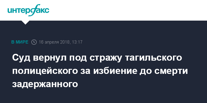 Суд вернул под стражу тагильского полицейского за избиение до смерти задержанного