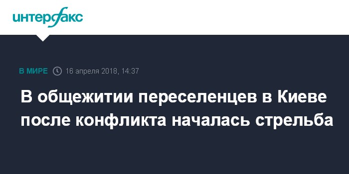 Москва. 16 апреля. INTERFAX.RU - В общежитии для переселенцев из Донбасса и участников боевых действий в Киеве произошел конфликт со стрельбой, пострадали два человека.