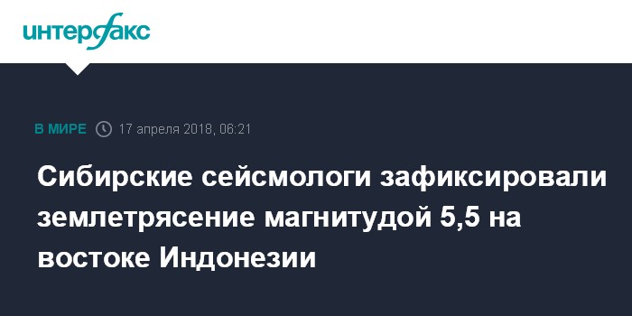 Сибирские сейсмологи зафиксировали землетрясение магнитудой 5,5 на востоке Индонезии