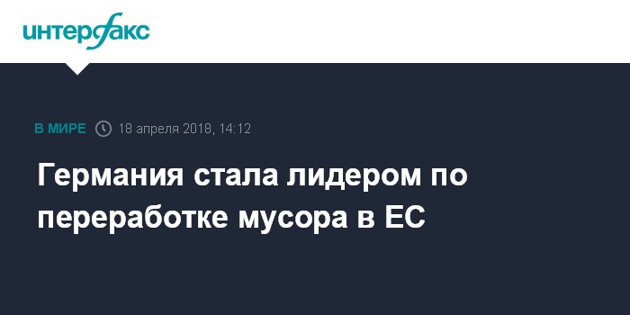 Москва. 18 апреля. INTERFAX.RU - Германия является лидером по переработке мусора в Европейском союзе, свидетельствуют результаты исследования Немецкого института экономики (IW).