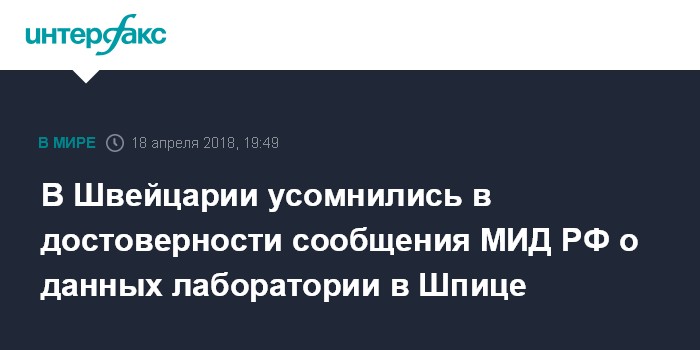 В Швейцарии усомнились в достоверности сообщения МИД РФ о данных лаборатории в Шпице