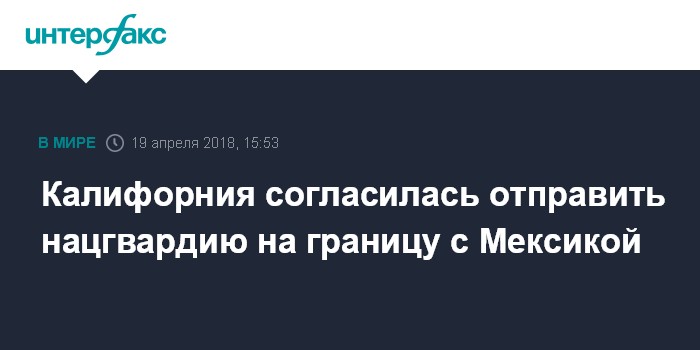 Москва. 19 апреля. INTERFAX.RU - Губернатор Калифорнии Джерри Браун согласился направить 400 служащих национальной гвардии штата на границу между США и Мексикой при условии, что они не будут участвовать в охране иммиграционных законов и строительстве пограничной стены.