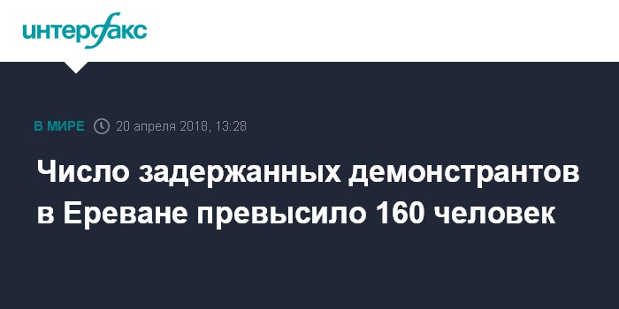 Москва. 20 апреля. INTERFAX.RU - Сотрудники полиции в Ереване в пятницу задержали более 160 сторонников оппозиции, перекрывающих дороги.