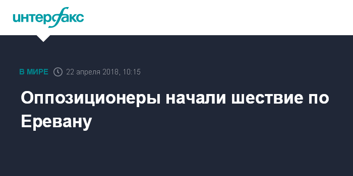 Москва. 22 апреля. INTERFAX.RU - Лидер оппозиционного движения, депутат парламента Армении Никол Пашинян и его сторонники после провалившегося диалога с премьер-министром Сержем Саргсяном возобновили шествия по Еревану.