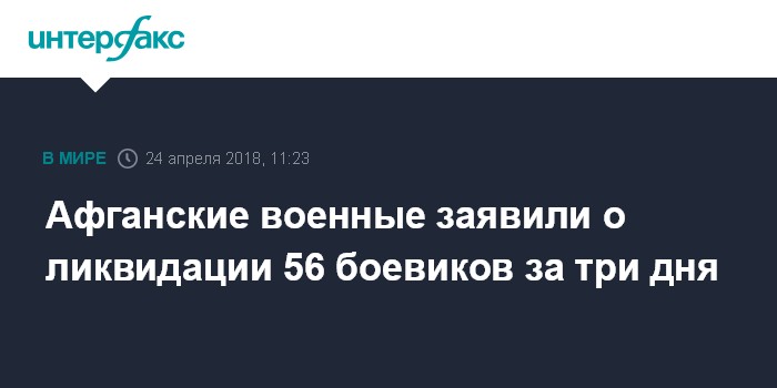 Москва. 24 апреля. INTERFAX.RU - На северо-востоке Афганистана за прошедшие три дня военными в ходе спецоперации ликвидировано 56 экстремистов, сообщили во вторник в штабе десятого батальона спецназа национальной армии республики.
