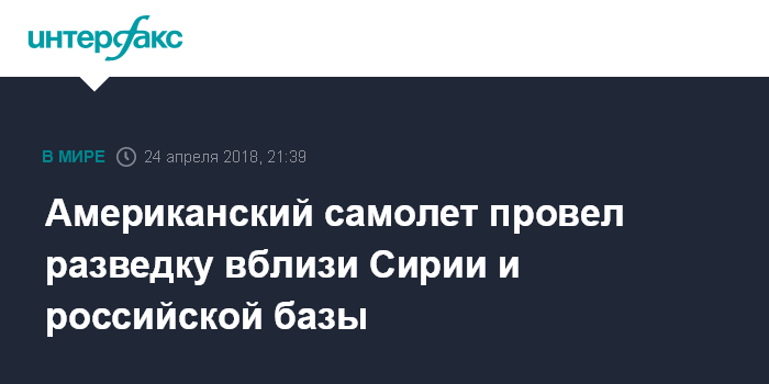 Как сообщалось, в понедельник разведывательные самолеты ВМС и ВВС США также осуществляли полеты вблизи берегов Сирии и расположенных там базы ВМФ РФ в порту Тартус и авиабазы ВКС России Хмеймим.