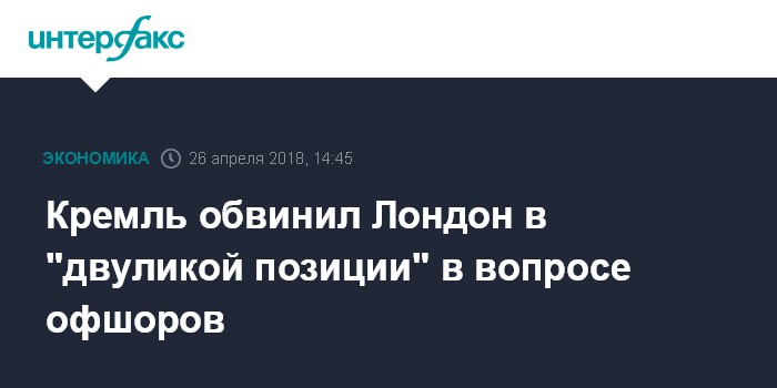 Москва. 26 апреля. INTERFAX.RU - В Кремле в связи с требованием Лондона к финансовым регуляторам раскрывать информацию о конечных бенефициарах компаний, зарегистрированных в Великобритании, обвинили британскую сторону в двуличной позиции.
