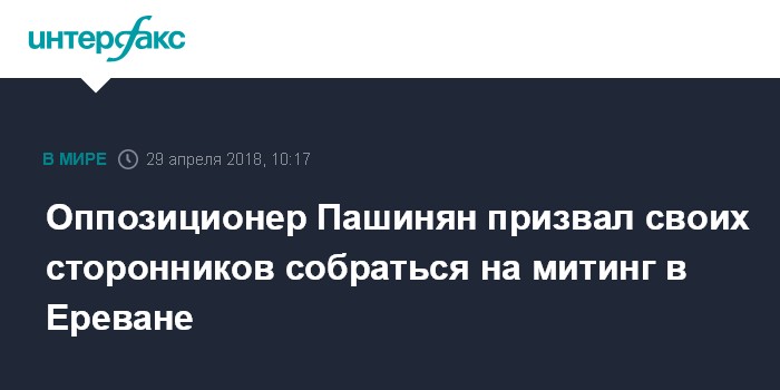 Москва. 29 апреля. INTERFAX.RU - Лидер протестного движения, руководитель парламентской фракции "Елк" Никол Пашинян призвал своих сторонников вечером в воскресенье собраться на митинг на площади Республики в центре Еревана.