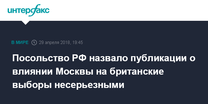 Москва. 29 апреля. INTERFAX.RU - В Москве обратили внимание на публикации британской прессы о предполагаемом влиянии России на выборы в Великобритании и называли эти утверждения несерьезными.