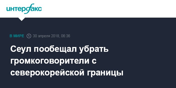 Москва. 30 апреля. INTERFAX.RU - Вооруженные силы Южной Кореи в понедельник заявили, что в скором времени уберут от демаркационной линии громкоговорители, из которых осуществлялось пропагандистское вещание на территорию КНДР, сообщает информагентство "Ренхап".