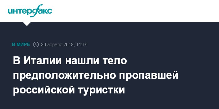 Москва. 30 апреля. INTERFAX.RU - В Италии, в горном массиве Монте Роза, спасатели обнаружили тело погибшей женщины, которая, возможно, является пропавшей в минувшую субботу туристкой из России, сообщает в понедельник информационное агентство ANSA.