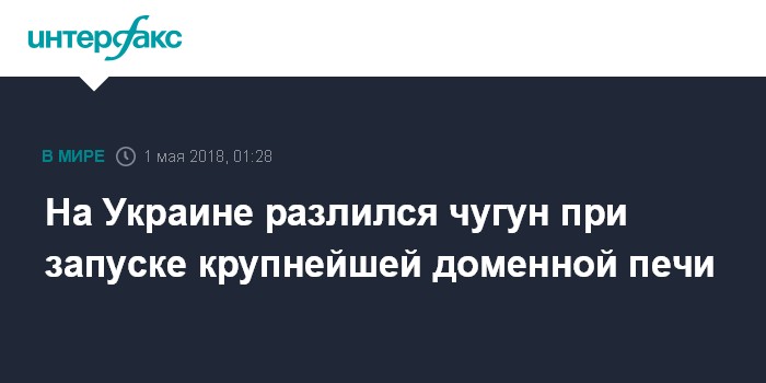 Москва. 1 мая. INTERFAX.RU - На Криворожском горно-металлургическом комбинате ПАО "ArcelorMittal Кривой Рог" (Днепропетровская обл.) при запуске крупнейшей доменной печи №9 после проведенного капитального ремонта произошел разлив расплавленного чугуна.
