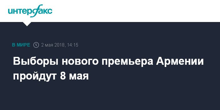 Москва. 2 мая. INTERFAX.RU - Выборы нового премьер-министра Армении назначены на 8 мая.