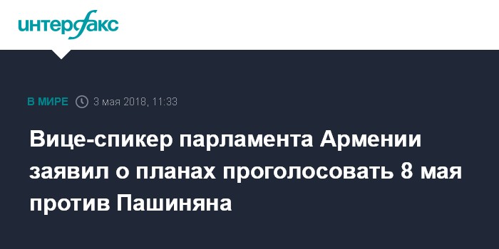 Вице-спикер парламента Армении заявил о планах проголосовать 8 мая против Пашиняна