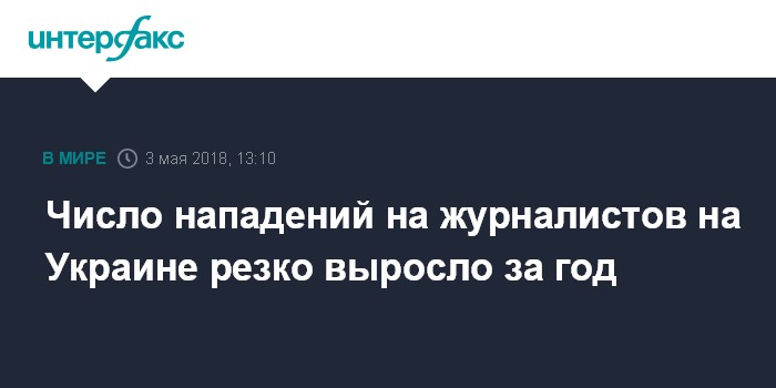 Москва. 3 мая. INTERFAX.RU - На Украине в первом квартале 2018 года зафиксировано 37 случаев проявления агрессии в отношении журналистов - в два раза больше, чем за аналогичный период прошлого года, сообщили в "Институте массовой информации" - представительстве на Украине международной организации "Репортеры без границ".