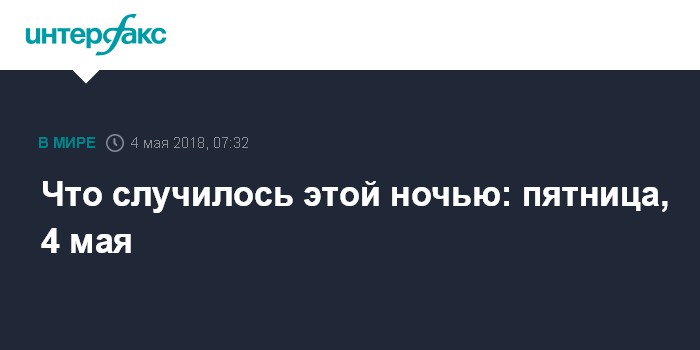 Москва. 4 мая. INTERFAX.RU - Краткая сводка событий, произошедших к утру: