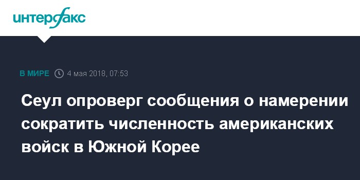 Москва. 4 мая. INTERFAX.RU - У президента США Дональда Трампа нет планов, касающихся сокращения численности американского воинского персонала в Южной Корее, сообщи журналистам представитель офиса южнокорейского главы государства.