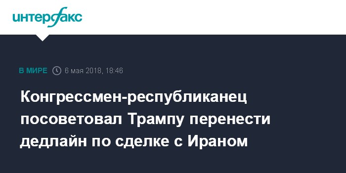 Конгрессмен-республиканец посоветовал Трампу перенести дедлайн по сделке с Ираном
