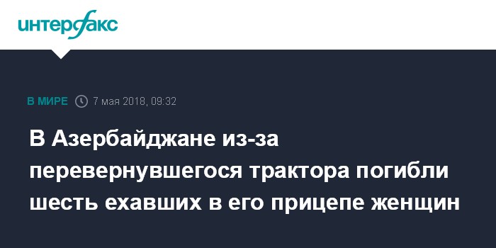 В Азербайджане из-за перевернувшегося трактора погибли шесть ехавших в его прицепе женщин