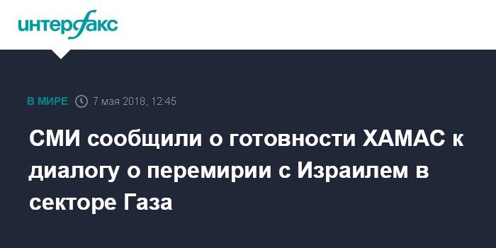 Москва. 7 мая. INTERFAX.RU - Палестинское движение ХАМАС, контролирующее сектор Газа, может предложить Израилю долгосрочное соглашение о перемирии в обмен на ослабление блокады, одобрение Израилем крупномасштабных инфраструктурных проектов и возможный обмен заключенными. Об этом пишет в понедельник газета Haaretz со ссылкой на оценки израильской разведки.