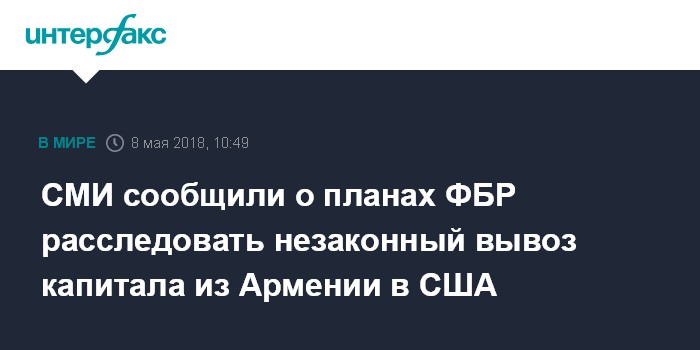 СМИ сообщили о планах ФБР расследовать незаконный вывоз капитала из Армении в США