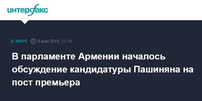 Москва. 8 мая. INTERFAX.RU - Обсуждение выборов нового премьер-министра Армении началось на специальном заседании парламента республики во вторник.