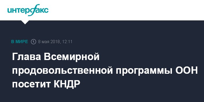 Москва. 8 мая. INTERFAX.RU - Глава Всемирной продовольственной программы (ВПП) ООН Дэвид Бизли прибывает с официальным визитом в Северную Корею, чтобы обсудить вопрос продовольственной безопасности этой страны.