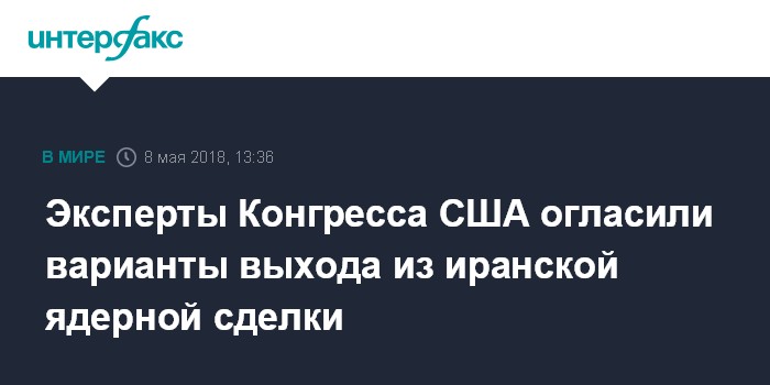 Москва. 8 мая. INTERFAX.RU - У президента США Дональда Трампа есть несколько вариантов для прекращения выполнения Совместного всеобъемлющего плана действий (СВПД) по иранскому атому, говорится в докладе Исследовательской службы Конгресса США.