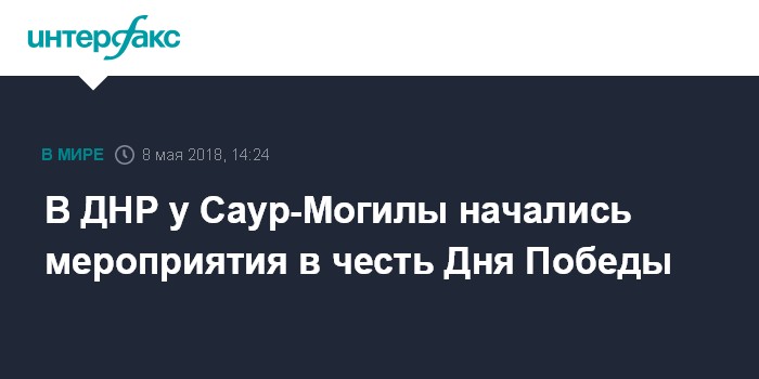 Москва. 8 мая. INTERFAX.RU - В самопровозглашенной Донецкой народной республике у мемориала Саур-Могила начались мероприятия, приуроченные к празднованию 73-й годовщины Победы в Великой Отечественной войне.