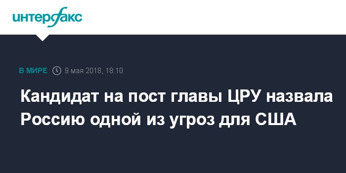 Москва. 9 мая. INTERFAX.RU - Кандидат на пост директора ЦРУ Джина Хаспел в письменном свидетельстве перед сенатским комитетом по разведке назвала Россию одной из угроз.