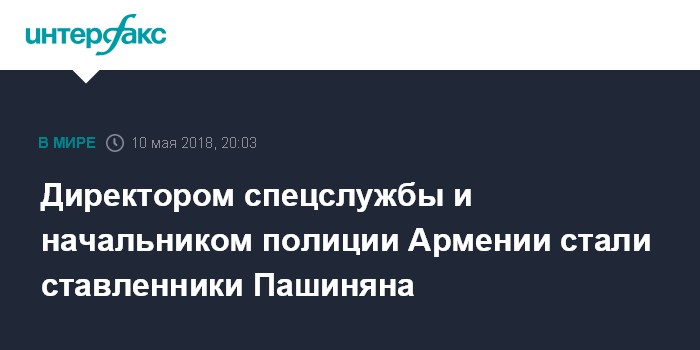 Директором спецслужбы и начальником полиции Армении стали ставленники Пашиняна