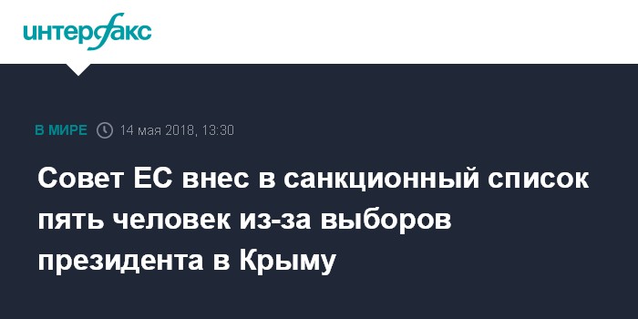 "В результате организации Российской Федерацией президентских выборов в Крыму и Севастополе, Совет счел, что пять человек должны быть добавлены к списку лиц, компаний и органов, являющихся объектом ограничительных мер", - сказано в юридическом акте, опубликованном в понедельник.