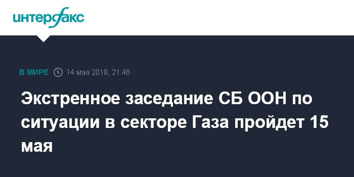 По его словам, экстренное заседание СБ ООН назначено на 15 мая на 10:00 по времени Нью-Йорка (17:00 по мск).