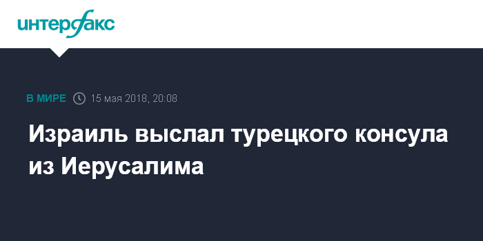 Москва. 15 мая. INTERFAX.RU - Израиль высылает турецкого консула из Иерусалима после того, как Анкара объявила о выдворении из Турции на некоторое время израильского посла, пишет во вторник The Jerusalem Post со ссылкой на израильский МИД.