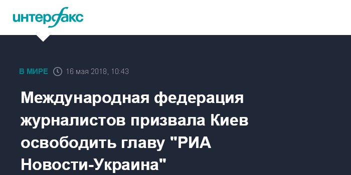 Международная федерация журналистов призвала Киев освободить главу "РИА Новости-Украина"