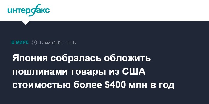 Япония собралась обложить пошлинами товары из США стоимостью более $400 млн в год