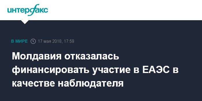 Москва. 17 мая. INTERFAX.RU - Правительство Молдавии не будет финансировать участие республики в качестве наблюдателя в Евразийском экономическом союзе (ЕАЭС), заявил премьер-министр республики Павел Филип.