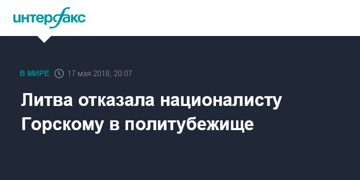 Москва. 17 мая. INTERFAX.RU - Литва отказалась предоставить политическое убежище националисту Юрию Горскому, сбежавшему из-под домашнего ареста в июле прошлого года.