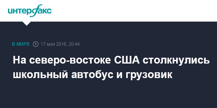 Москва. 17 мая. INTERFAX.RU - По меньшей мере 10 человек пострадали в результате ДТП с участием самосвала и школьного автобуса в штате Нью-Джерси на северо-востоке США, передает в четверг агентство АР со ссылкой на местную полицию.
